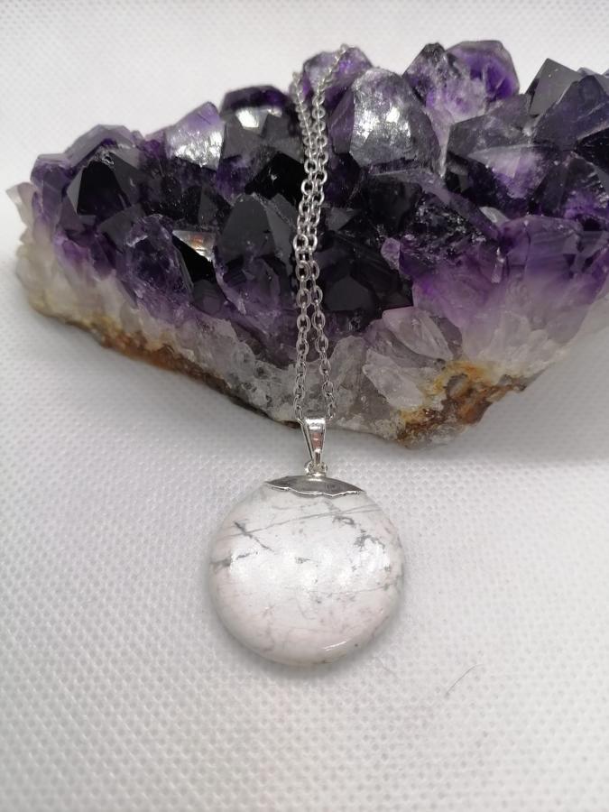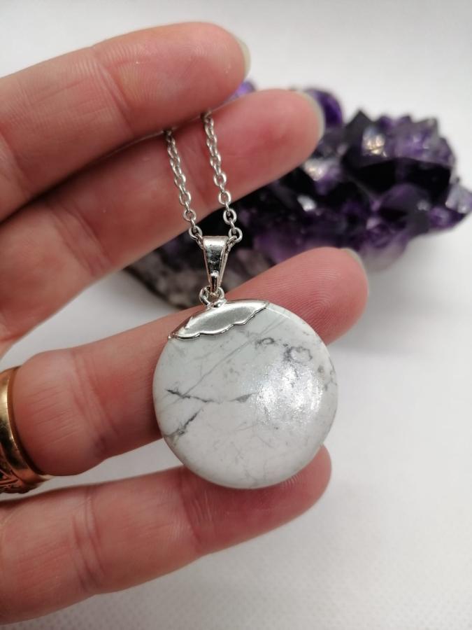 Dije círculo piedra natural Howlita con cadena fina de acero.