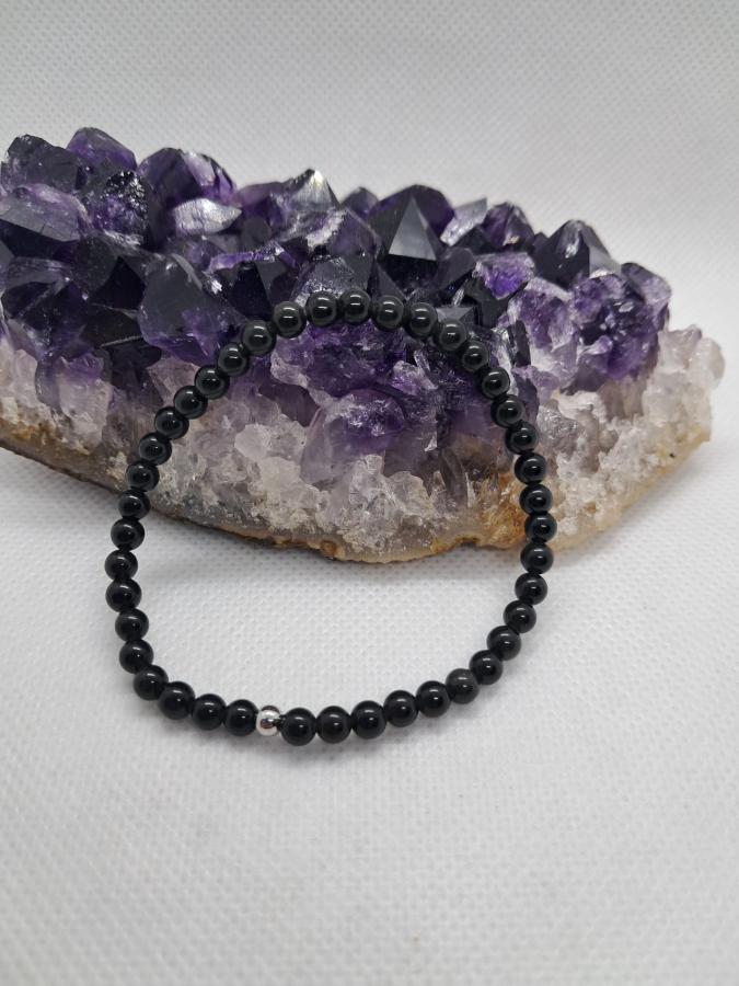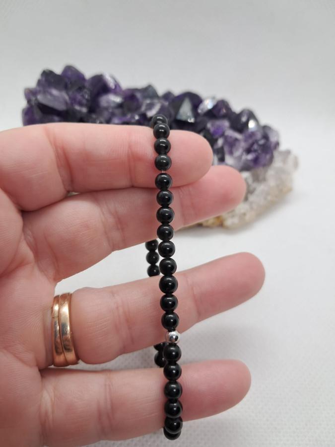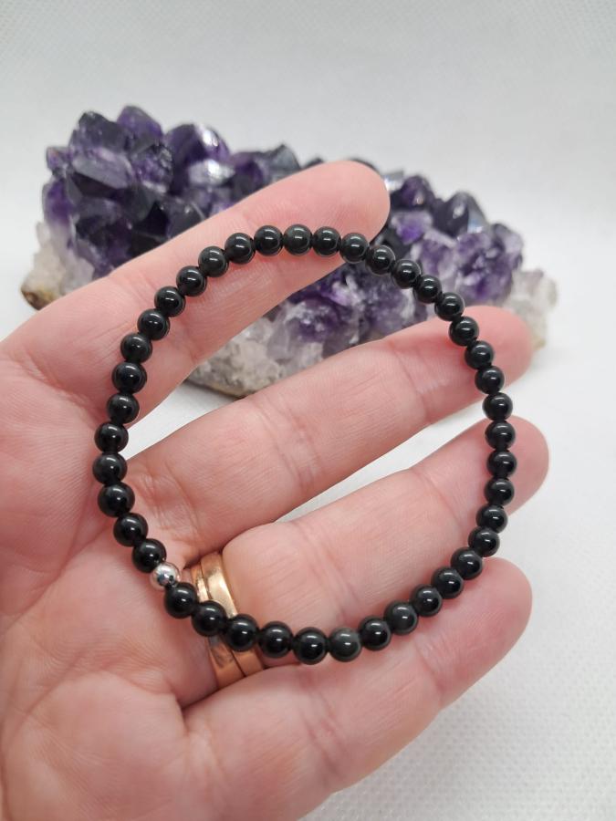 Pulsera en bolita de 4 mm en piedra natural obsidiana elástica.