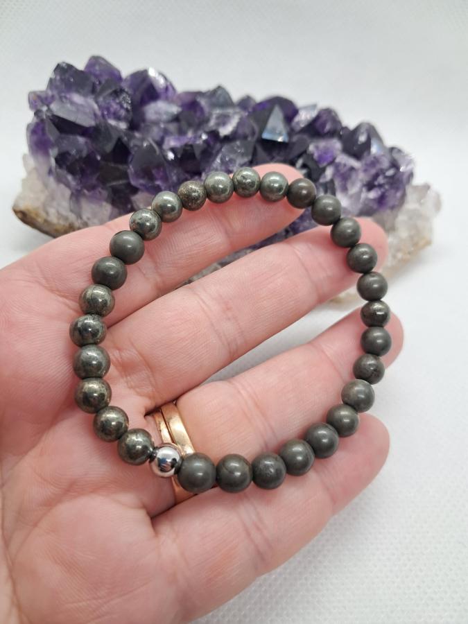 Pulsera en piedra natural en pirita bolita de 6 mm elástica.