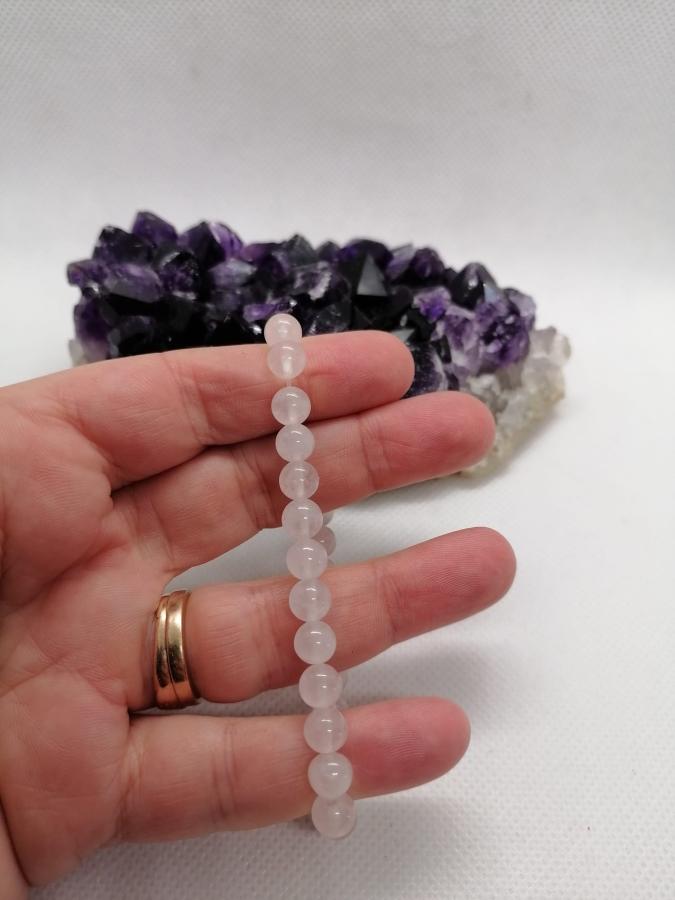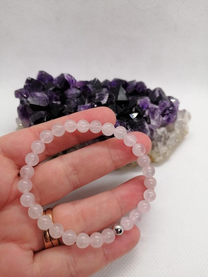 Pulsera en piedra natural en cuarzo rosa en bolita de 6 mm elástica.