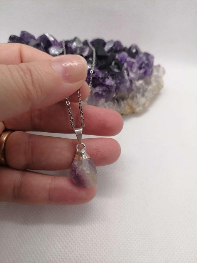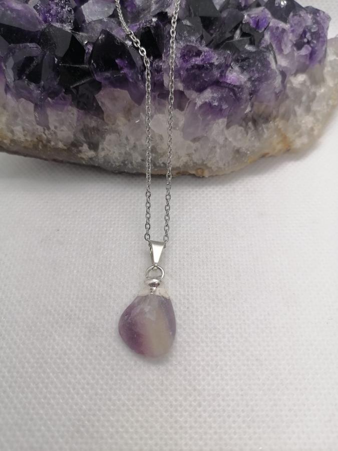 Dije con electro en piedra natural fluorita con cadena fina de acero.