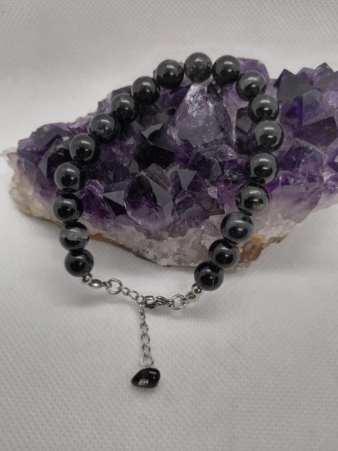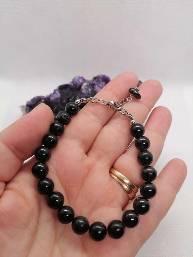 Pulsera en turmalina negra bolita de 8 mm con cierre de acero.