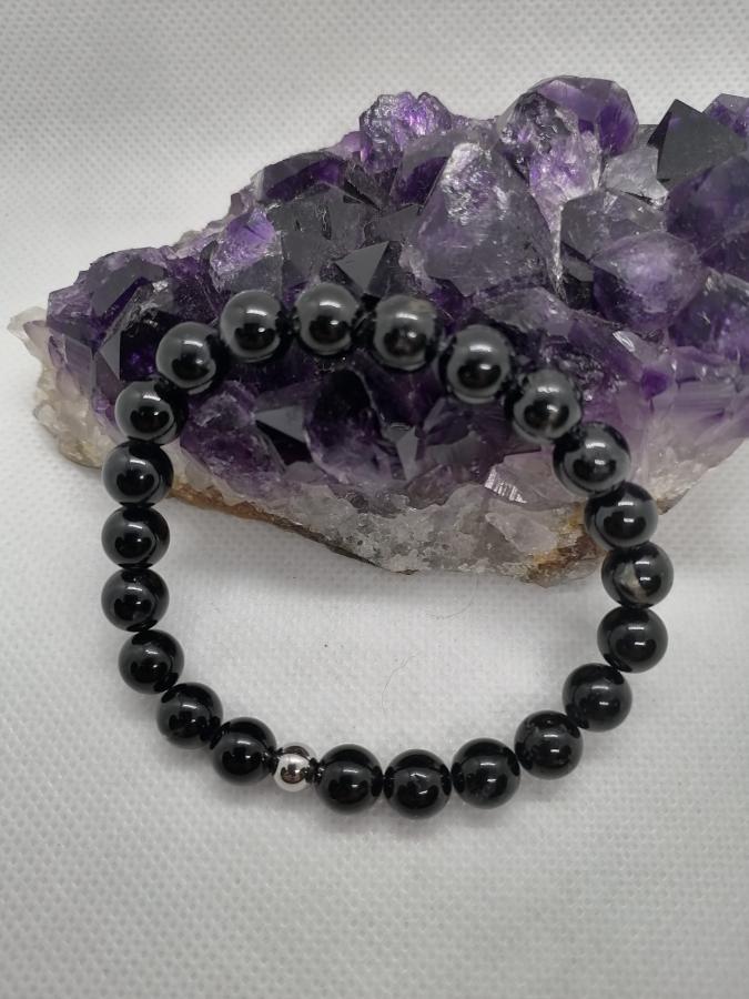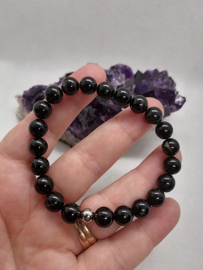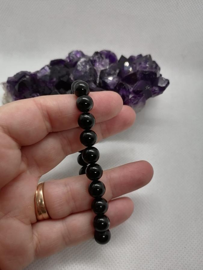 Pulsera en turmalina negra bolita de 8 mm elástica.