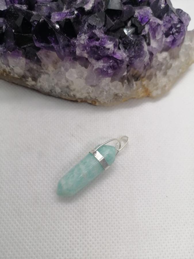 Dije de piedra natural amazonita con cadena fina de acero.