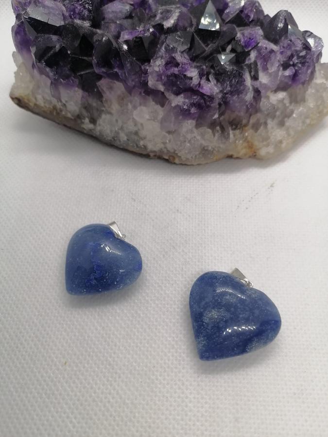 Dije corazón grande en piedra natural cuarzo azul con cordón negro