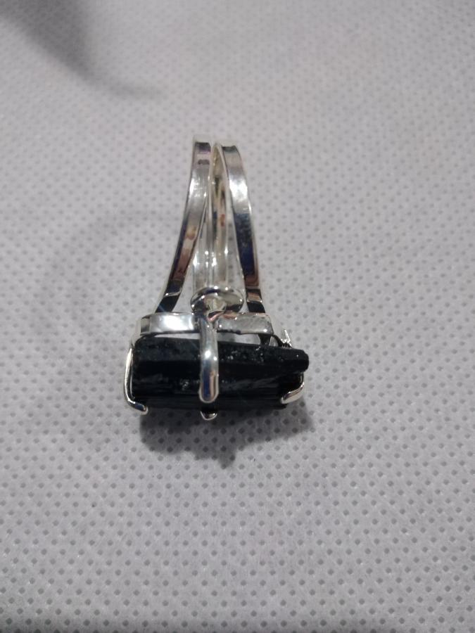 Anillo regulable enchapado con piedra energética turmalina negra.
