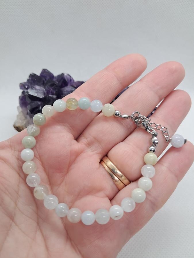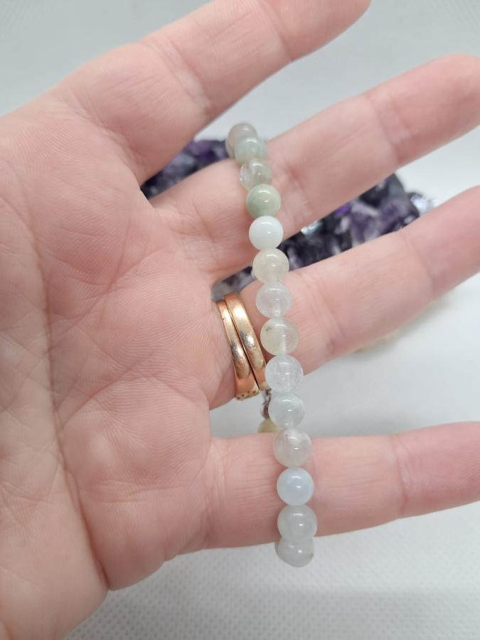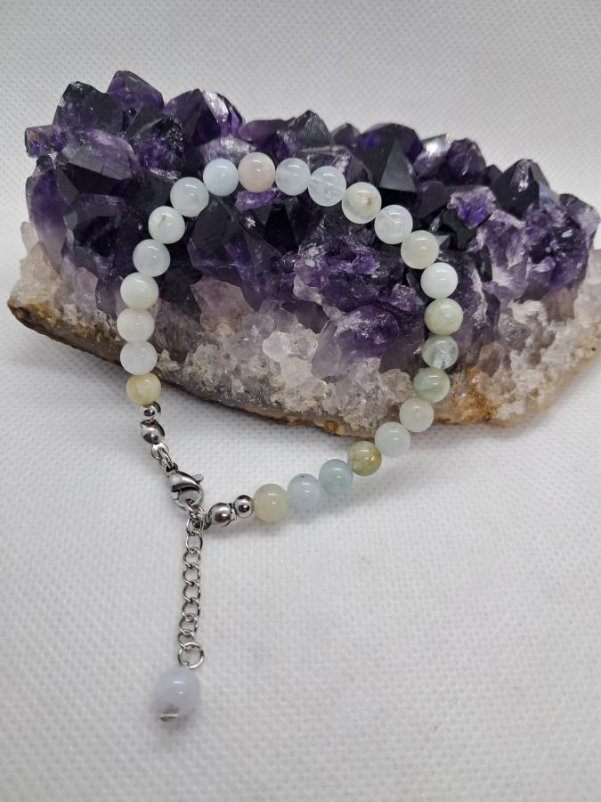 Pulsera en piedra natural aguamarina en bolita de 6 mm y cierre de acero quirugico.