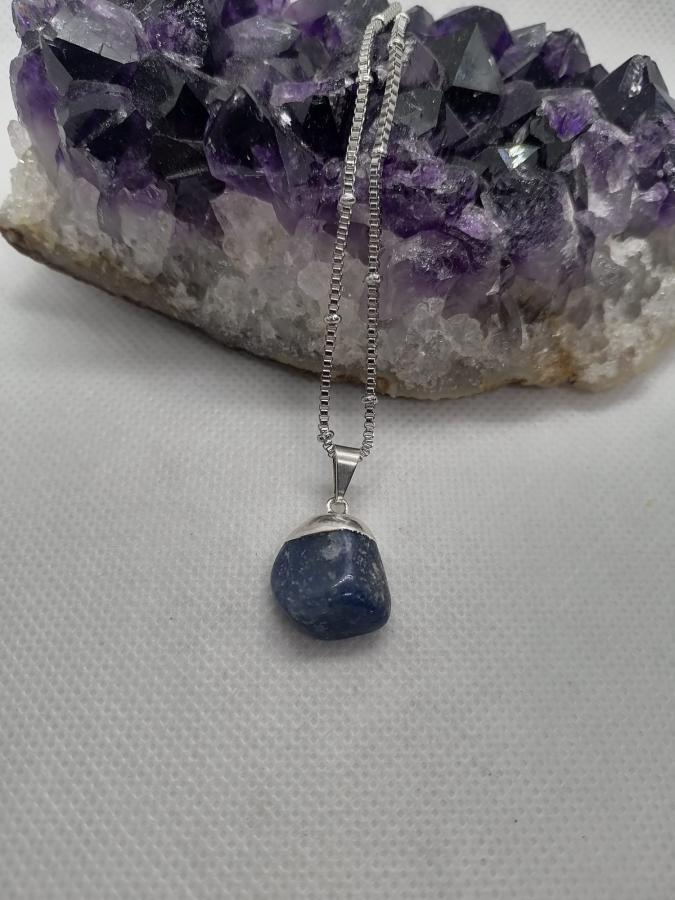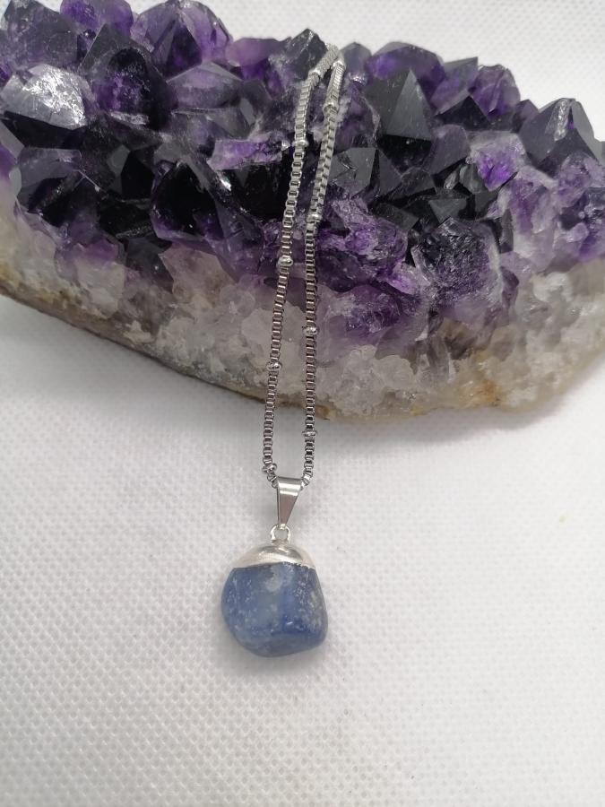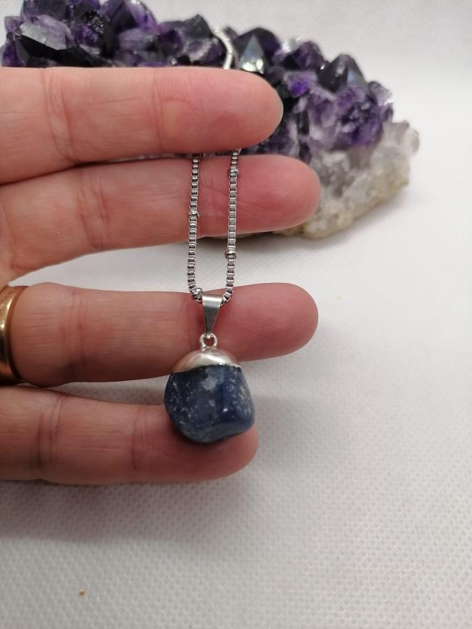 Dije en piedra natural cuarzo azul con cadena gruesa de acero.