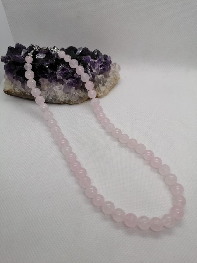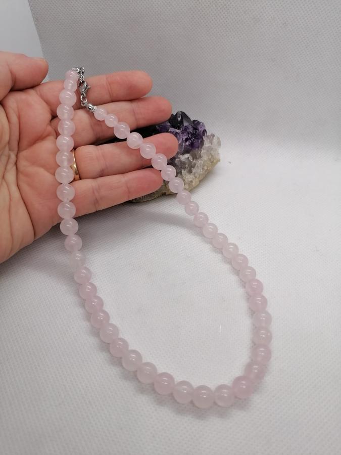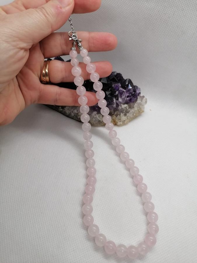 Gargantilla en piedra natural en cuarzo rosa en bolita 8mm.