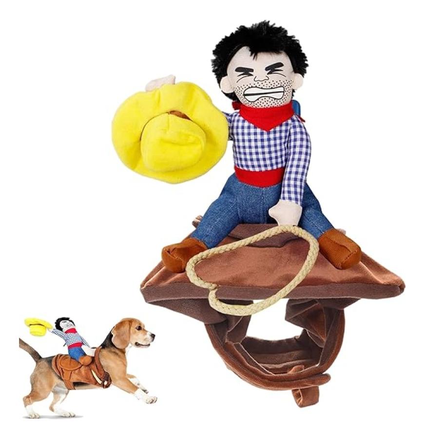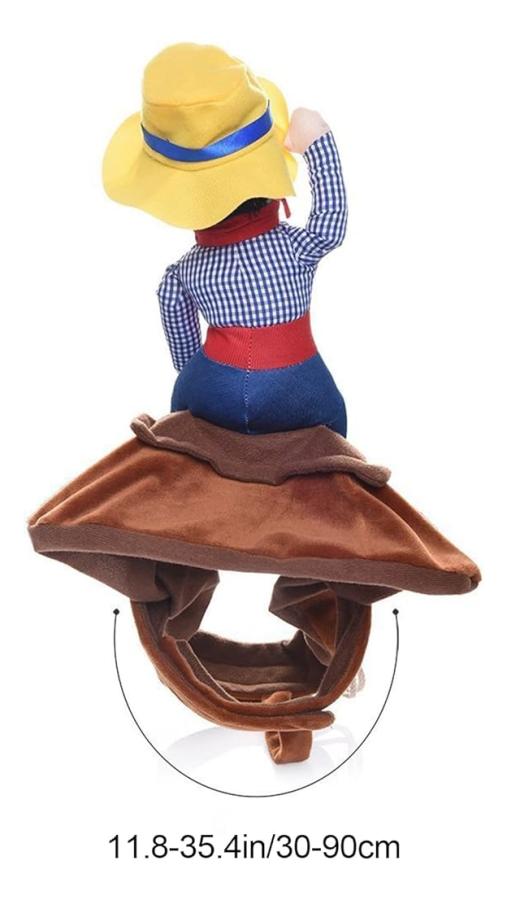 Diseño “jinete” con muñeco y sombrero para crear el efecto de que tu mascota está “montando” al caballo.