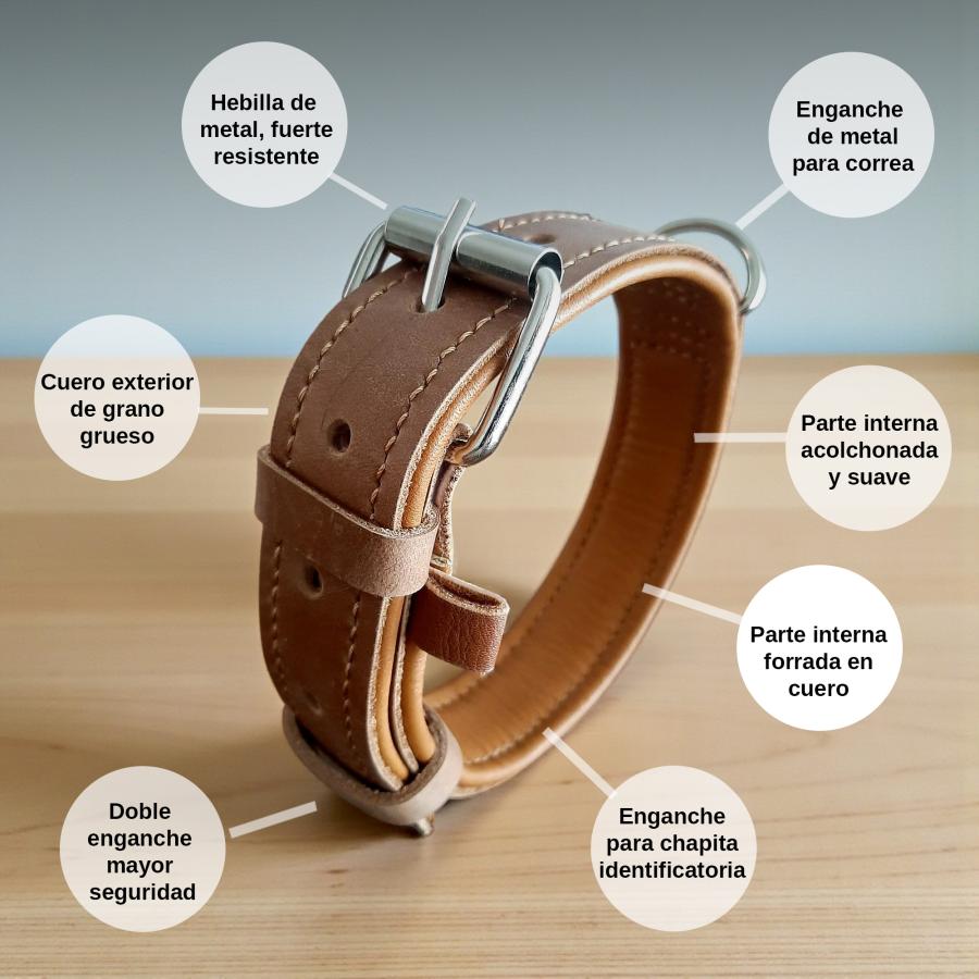 Cada collar está cosido a mano, con un interior acolchonado y suave que protege el cuello de tu perro para un ajuste cómodo