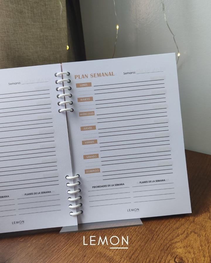 Planner modelo Lotus, con un diseño semanal simple, en tonos amarillo pastel.