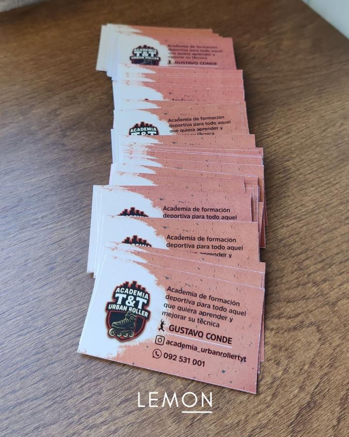 Tarjetas personales en papel glossy de 230 gs simple faz, tiene una terminación en alta calidad con brillo, el precio corresponde a 100 unidades y su medida es de 9 x 5 cm.