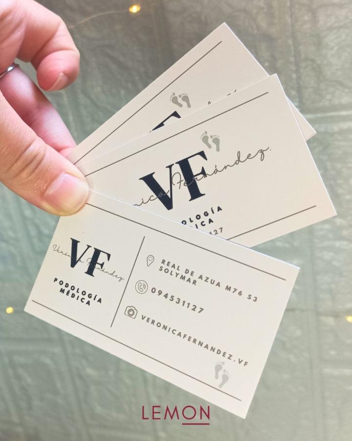 Tarjetas personales en papel glossy de 260 gs doble faz, tiene una terminación en alta calidad con brillo, el precio corresponde a 100 unidades y su medida es de 9 x 5 cm.