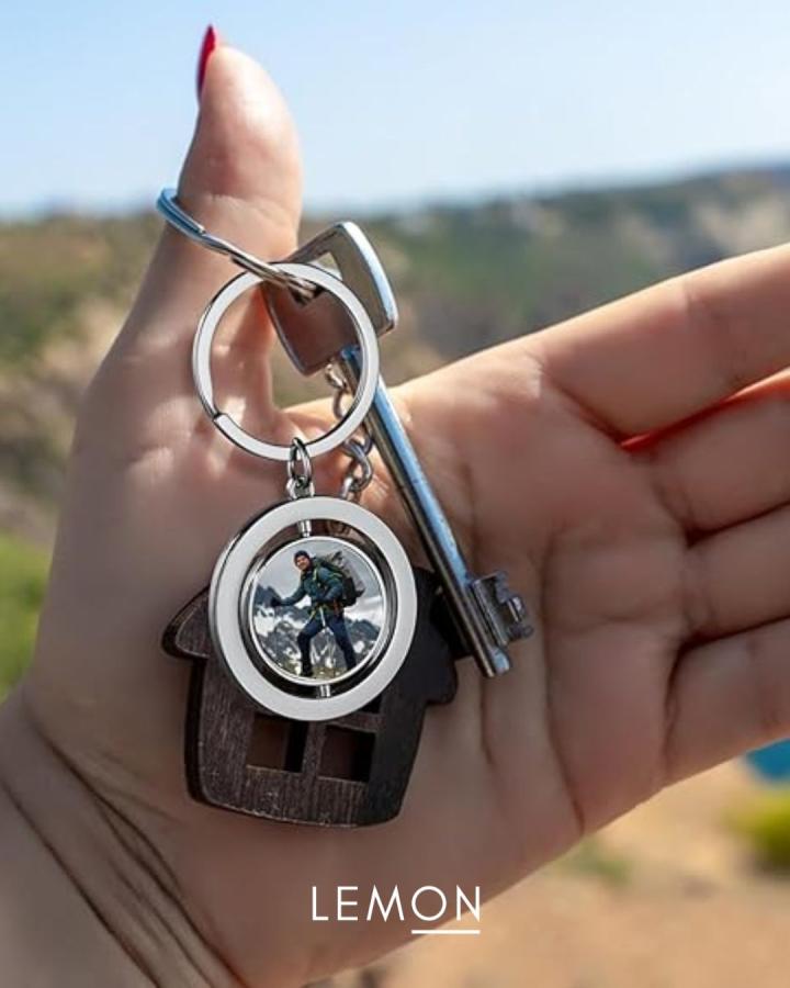 Llavero giratorio para personalizar, se le pueden incluir dos diseños diferentes (uno de cada lado), su medida es de 7.5 x 3.5cm