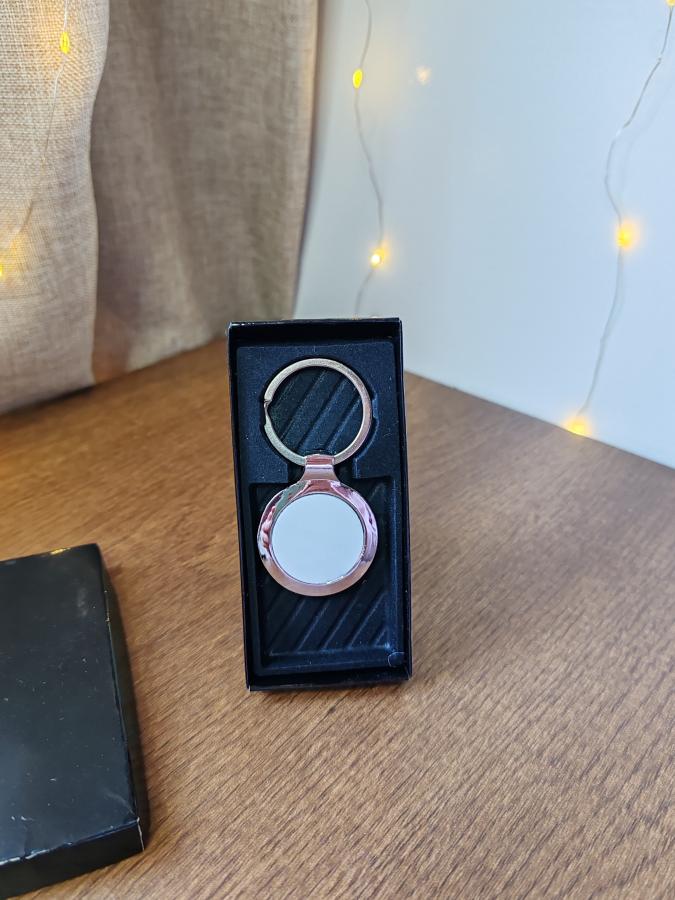 Llavero de metal para personalizar, el area imprimible es de 2.5 cm