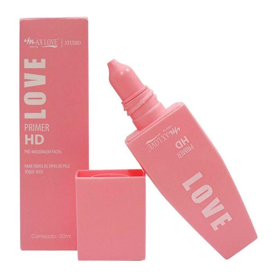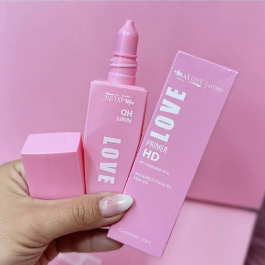 Primer Facial HD Max Love: primer de alta definición que uniforma la piel, minimiza poros y difumina líneas finas para un acabado suave y profesional. Textura ligera y sedosa que mejora la duración del maquillaje.