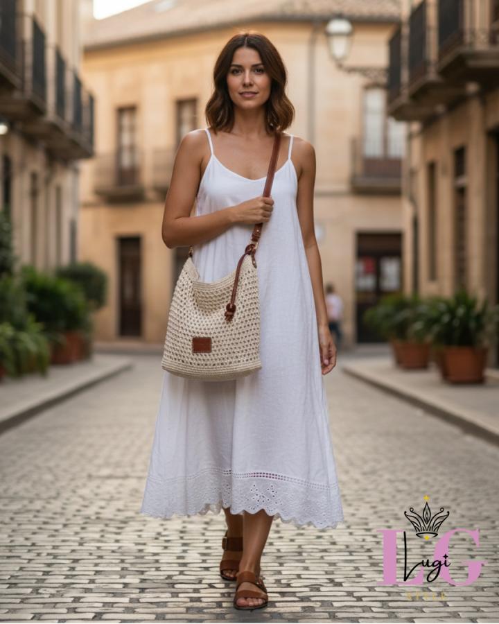 Su diseño tejido a mano y su correa de cuero marrón le dan un aire mediterráneo que combina con cualquier outfit, de día o de noche. 🌿