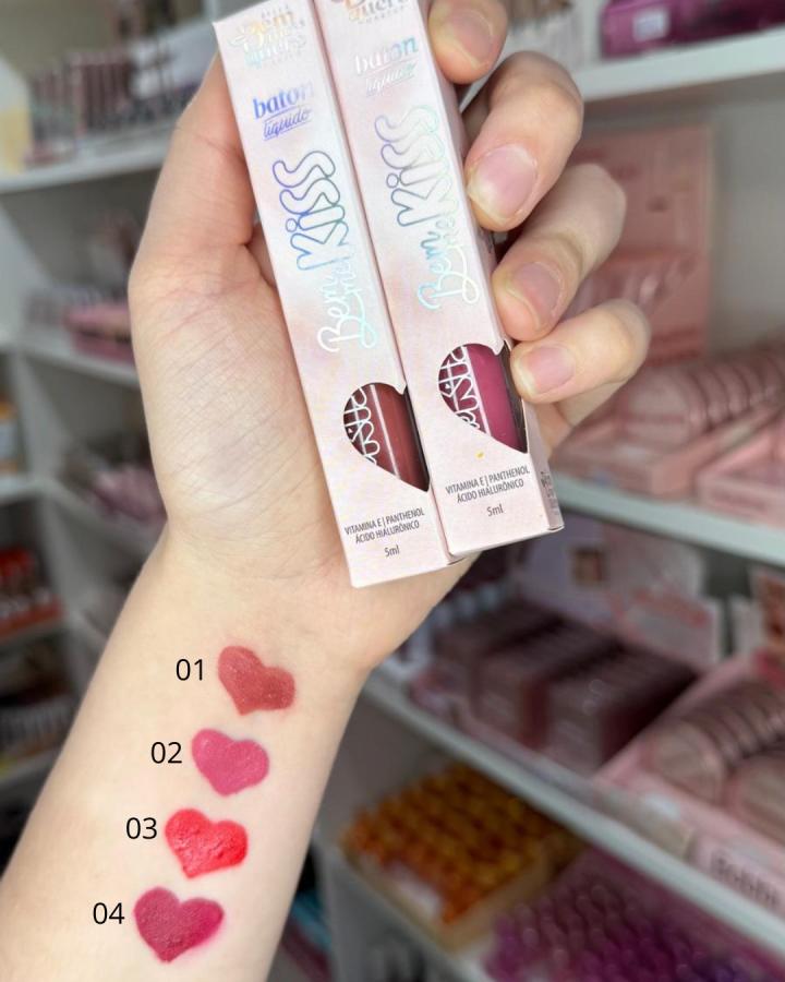 El Batom Líquido Bem Kiss combina color vibrante, textura suave y un acabado súper cómodo para llevar durante todo el día. Su fórmula enriquecida con Vitamina E, Pantenol y Ácido Hialurónico hidrata profundamente mientras entrega una pigmentación uniforme desde la primera pasada.