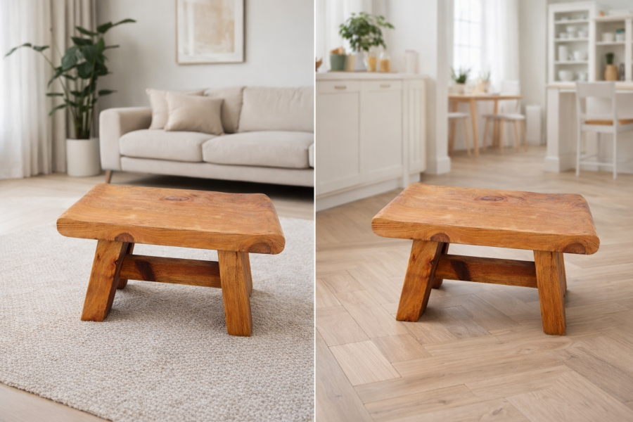 Versátil y funcional, puede utilizarse como banquito, mesa auxiliar, apoyo decorativo o elemento de acento en livings, dormitorios o espacios de diseño, integrándose con facilidad en ambientes rústicos, modernos o contemporáneos.