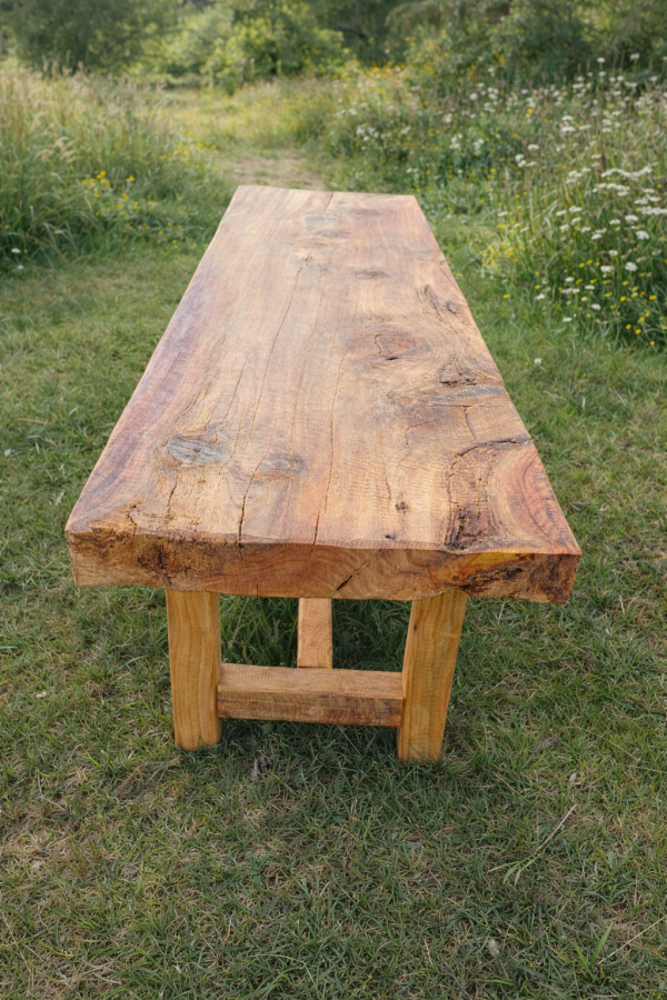 El acabado al aceite de alta calidad protege la madera y realza su veta natural, aportando un tono cálido y una textura agradable al tacto. Cada banco es fabricado de manera artesanal, respetando las características propias del ciprés, sus nudos y variaciones, haciendo que cada pieza sea única.