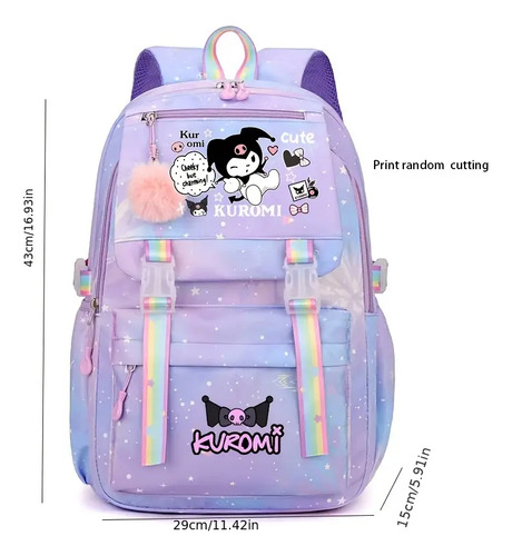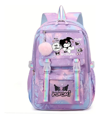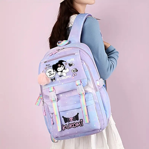 Nuestra mochila escolar Kuromi Modelo 1 tiene capacidad de 19L, ideal para el día a día escolar. Su diseño impreso en color lila destaca por su estilo atrevido y divertido, perfecto para quienes aman a este personaje icónico de Sanrio.