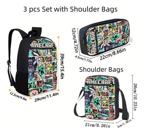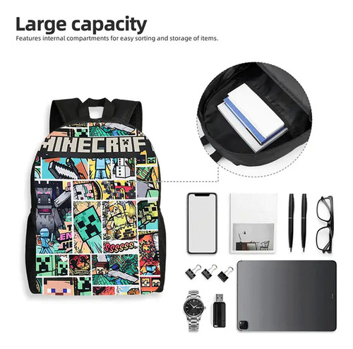 La mochila escolar Minecraft 13L 🎮👾 es el set ideal para los fans del juego más popular. Su diseño en color negro con estampado oficial de Minecraft 💚 destaca por estilo y originalidad.