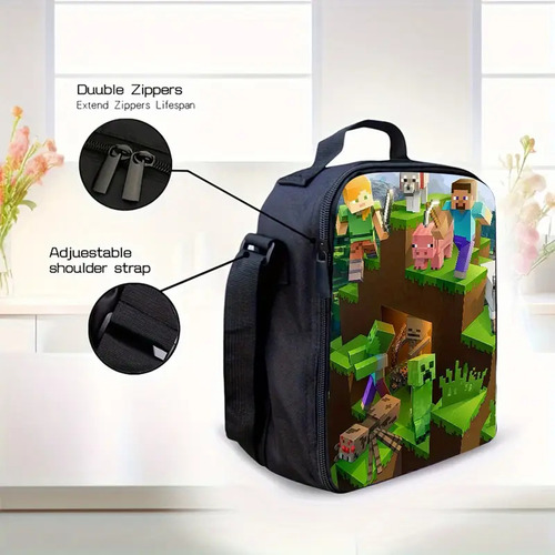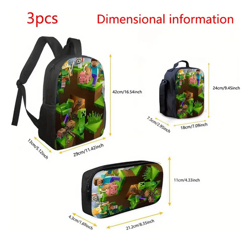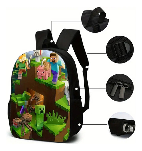Incluye lonchera 🍱 y cartuchera ✏️ a juego, creando un set completo y práctico para el día escolar. Con capacidad de 15 litros, es ideal para libros 📚, cuadernos y accesorios. Fabricada con materiales resistentes 💪 y cómoda de llevar, esta mochila combina funcionalidad y el mundo de Minecraft en un solo producto ⭐.