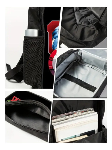Con una capacidad de 15 litros, ofrece el espacio necesario para libros, cuadernos, útiles y accesorios escolares. Su diseño en negro con detalles de Avengers le da un estilo moderno y lleno de energía.