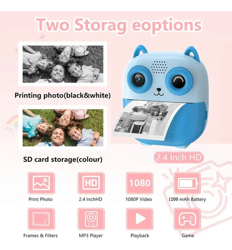 Fácil de usar, compacta y ligera 💪, permite llevar tus recuerdos a cualquier lugar y compartirlos al instante 🖼️✨. Perfecta para niños, adolescentes y adultos que quieren inmortalizar cada momento con un toque divertido y colorido 🌟.