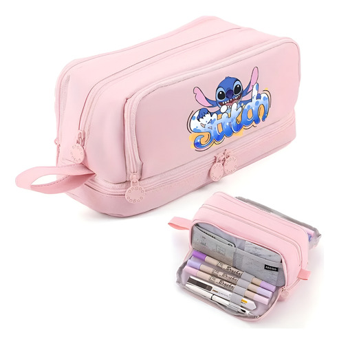Cartuchera Stitch Compacta Y Funcional Rosa Pálido Stitch 2