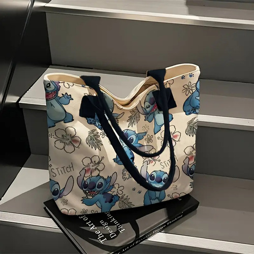 El bolso de hombro Stitch 💙 combina funcionalidad y estilo divertido. Confeccionado en poliéster simil lino negro 🖤, presenta un diseño con los adorables personajes de Stitch 🐾, ideal para sumar un toque tierno y original a cualquier look.