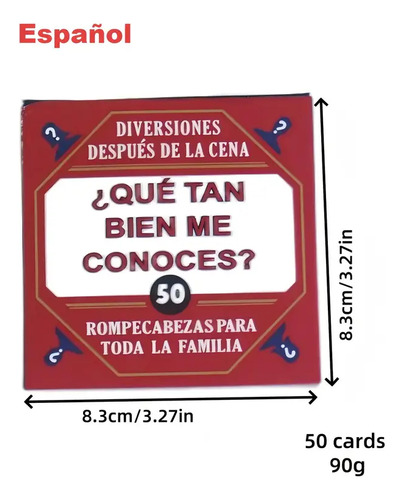 Con preguntas originales, desafíos y situaciones divertidas, pondrá a prueba cuánto saben realmente los demás sobre vos. Ideal para romper el hielo, compartir anécdotas y descubrir nuevas facetas de quienes te rodean.