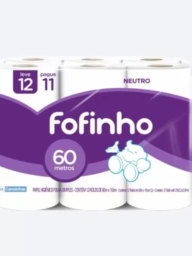 Descubre la suavidad y calidad premium del Papel Higiénico Fofinho. Cada rollo cuenta con 60 metros de pura comodidad, ¡perfecto para el día a día en tu hogar!