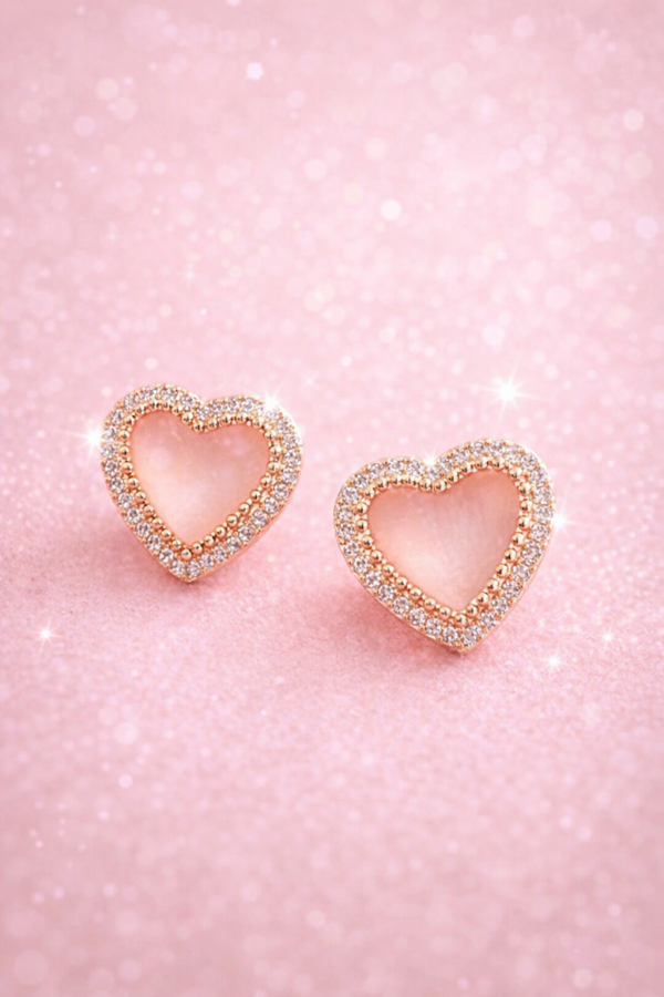 Estos aretes de corazon estan diseñados para quienes aman los detalles delicados y elegantes.incorporan pequeñas piedrecitas que aportan brillo sutil y un acabado fino, perfecto para completar tanto looks casuales como mas formales.