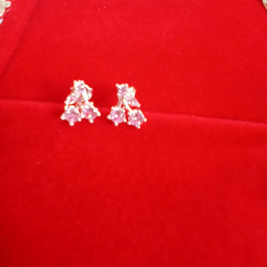 Diseño inspirado en un ramito de cereza,con dos bolitas inferiores y hojitas superiores adornadas con piedras rosadas que capturan la luz suavemente .Un accesorio ligero,delicado y sofisticado que aporta un toque de encanto discreto a cualquier look.