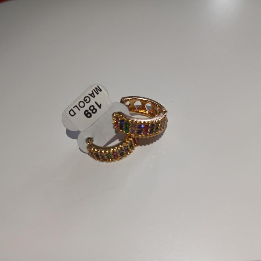 Argollas pequeñas y anchitas,con un diseño moderno y delicado la parte de adelante esta decorada con mini piedrecitas multicolor en tonos ,blanco,rosado,morado y verdes que aportan brillo y un toque alegre sin perder elegancia .