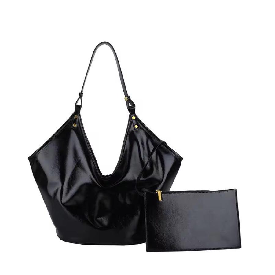 El bolso Éclisse destaca por su silueta amplia y su acabado brillante, que aporta un toque de distinción sin esfuerzo.