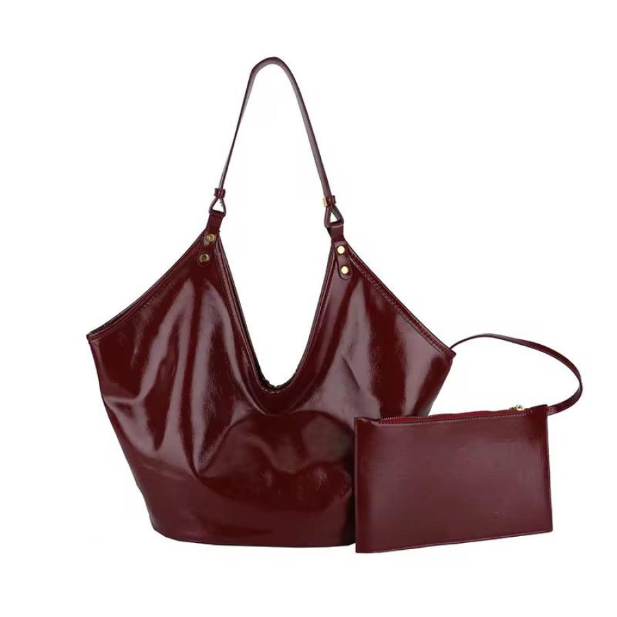 El bolso Éclisse destaca por su silueta amplia y su acabado brillante, que aporta un toque de distinción sin esfuerzo.