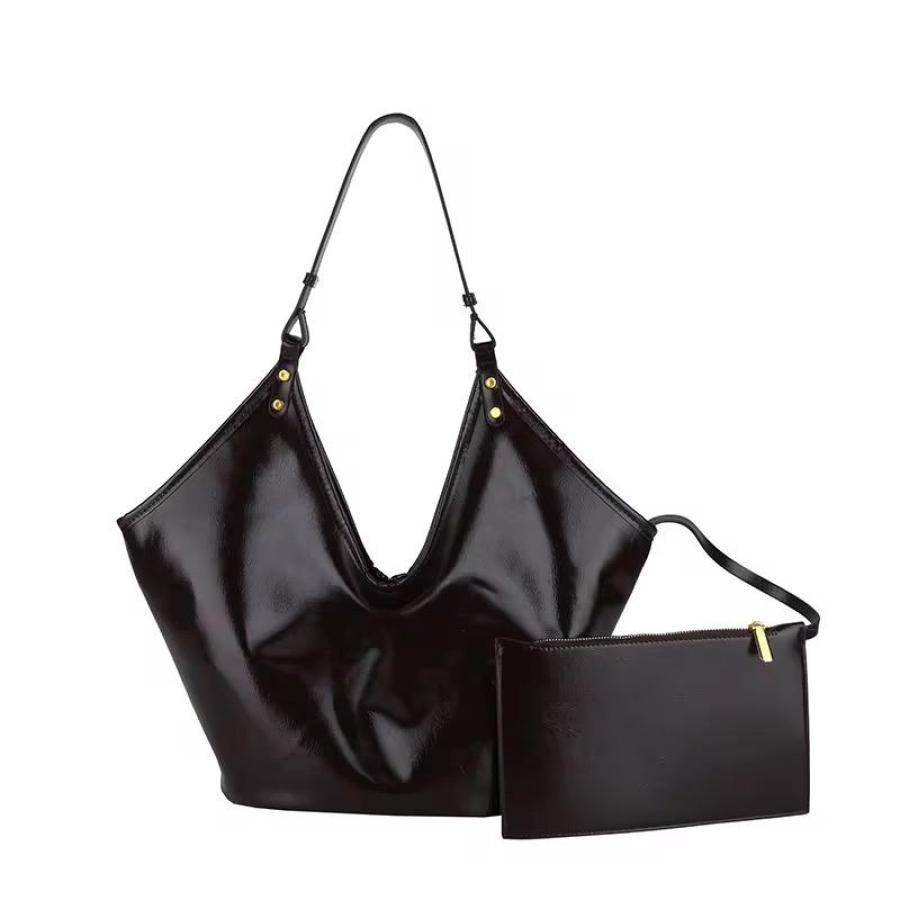 El bolso Éclisse destaca por su silueta amplia y su acabado brillante, que aporta un toque de distinción sin esfuerzo.