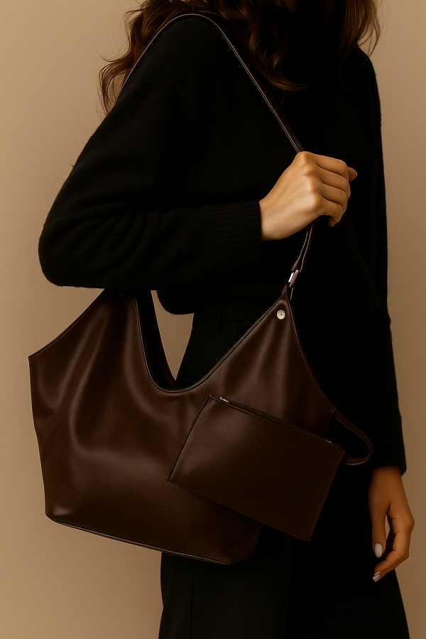 Liviano, cómodo y con líneas fluidas, ofrece espacio suficiente para llevar lo esencial —y algo más— con elegancia.