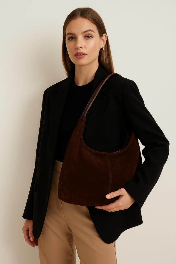 El bolso Suede Marron está confeccionado en material tipo gamuza, de tacto suave y estructura flexible, ideal para un look relajado pero cuidado.