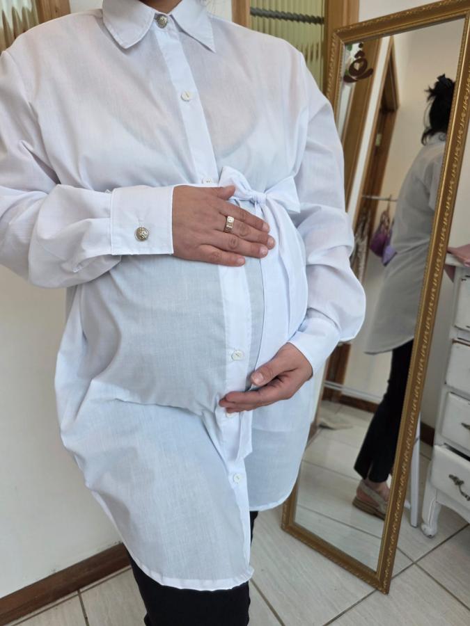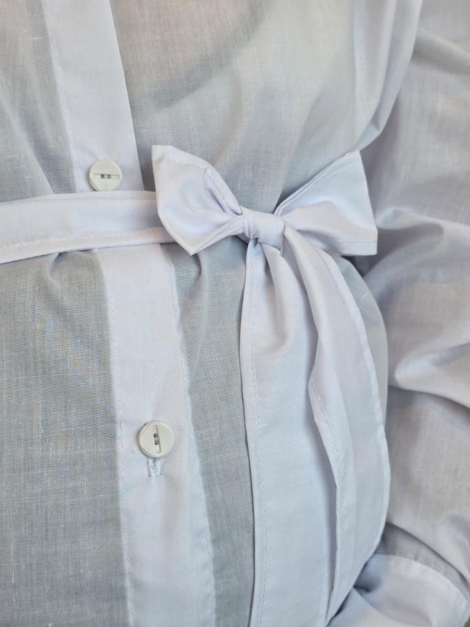 CAMISA CLASICA LARGA CON CINTO Y BOTONES LATERALES.