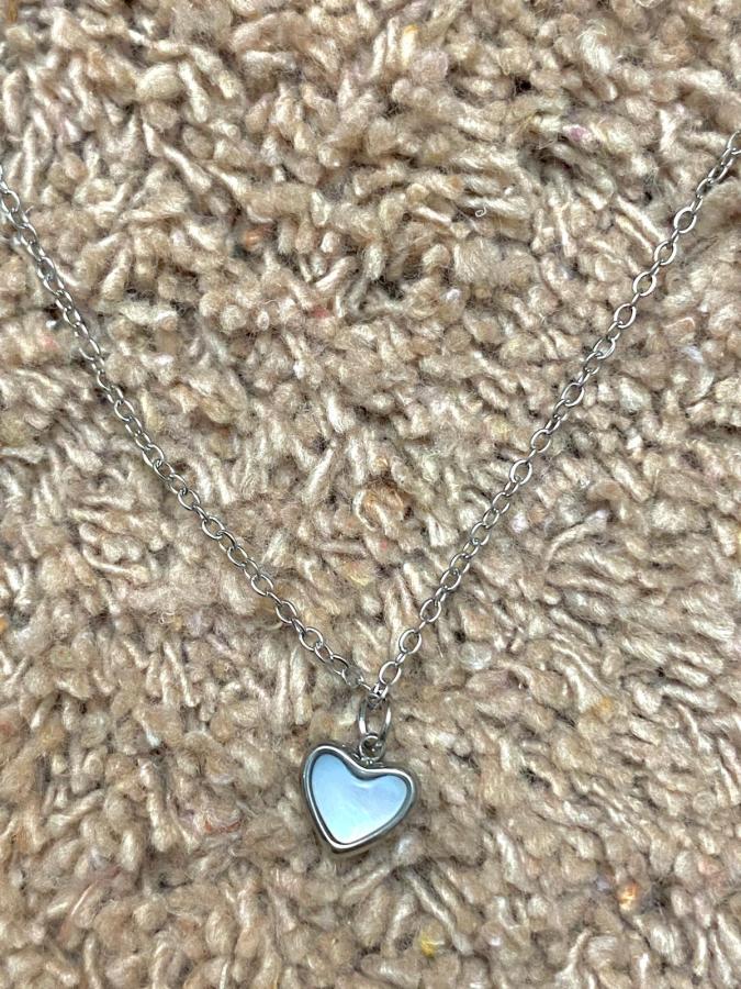 Cadena Corazón nácar plateada
