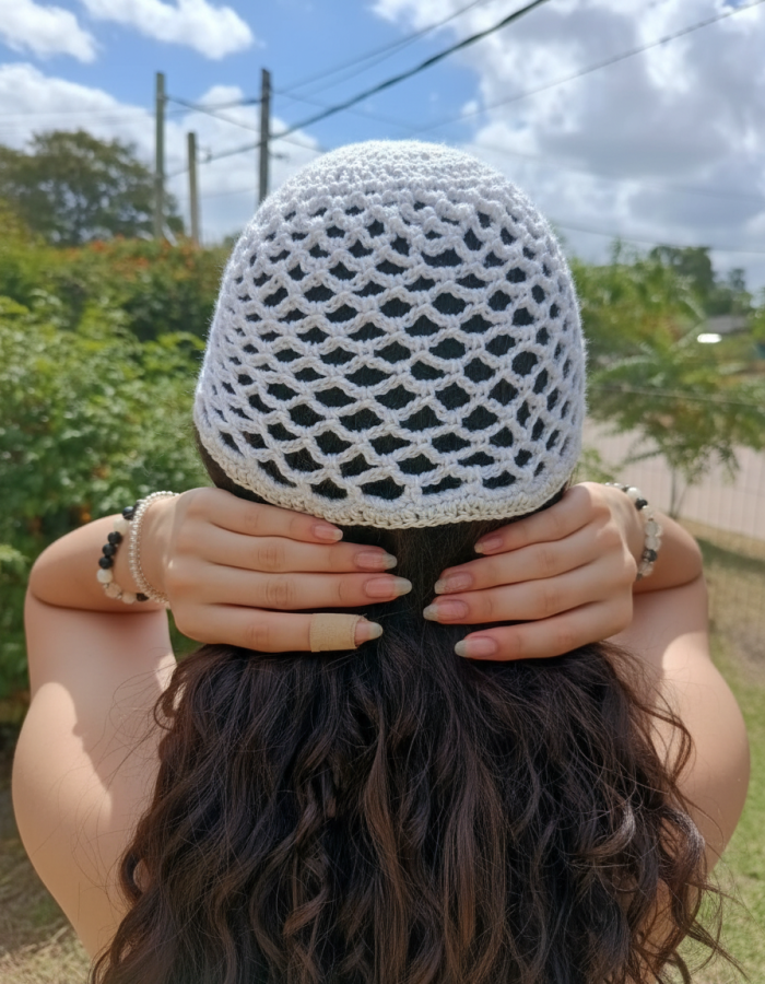 Gorrito tejido completamente a mano por mi abuela de 94 años, con diferentes hilos y diseños en cada uno.