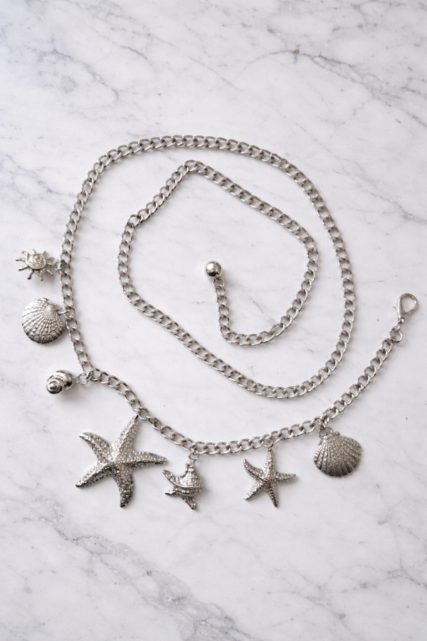 .Cinturón tipo cadena pensado para marcar la cintura y sumar un detalle protagonista al outfit.