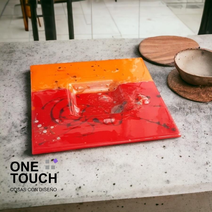 Diseño limpio, líneas definidas y una paleta depurada, acorde al estilo ONE TOUCH. Cada pieza es única, con terminaciones cuidadas y un proceso artesanal que resalta la transparencia y los contrastes del vidrio.