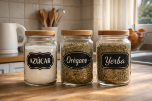 Etiquetas para frascos de cocina en vinilo adhesivo