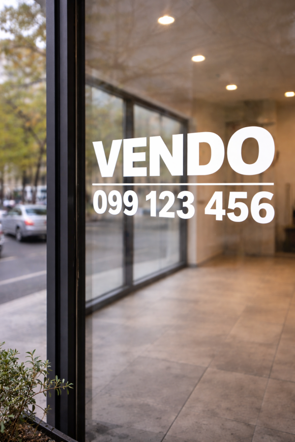 Vinilo adhesivo de corte con texto “VENDO” número de teléfono.