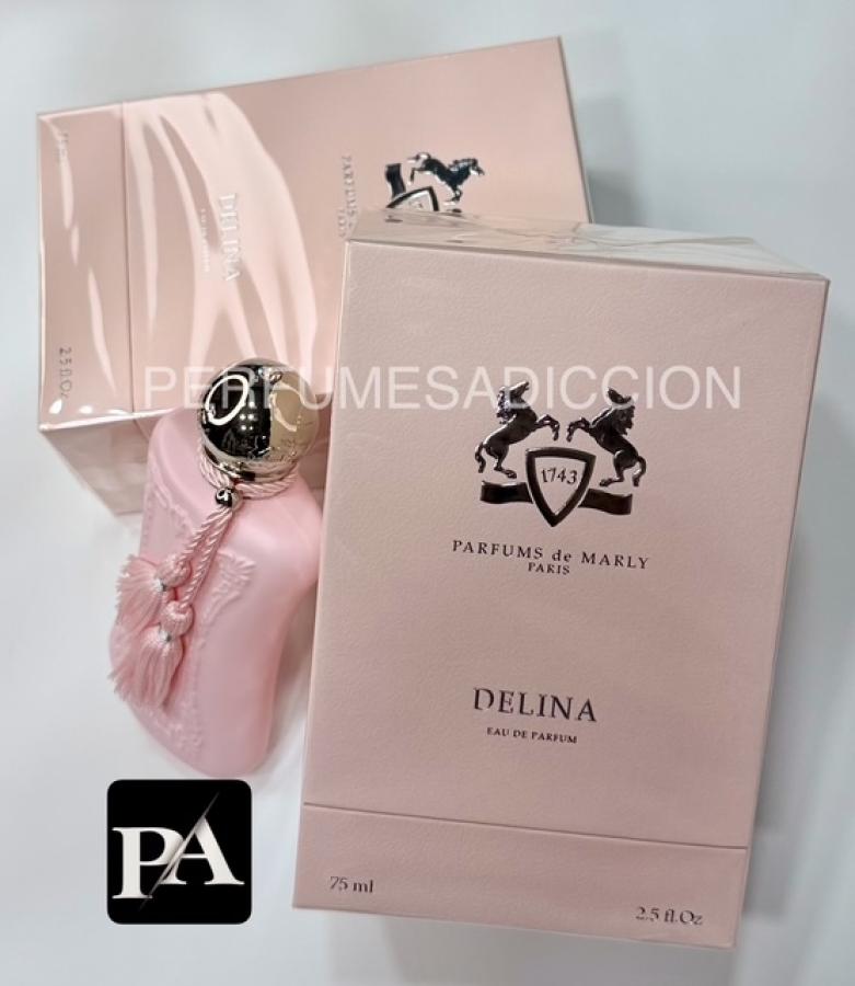 Un encantador y moderno bouquet floral. Delina es una fragancia con múltiples matices, dulce y sensual a la vez. El eau de parfum se deleita con sus acordes florales, dominados por la rosa damascena, el lirio de los valles y la peonía, que se funden con las notas cítricas y redondas del lichi, el ruibarbo, la bergamota y la nuez moscada. La vainilla acentúa la sensualidad de la composición en el fondo, mezclándose con almizcle blanco, cachemir, madera de cedro e incienso.
